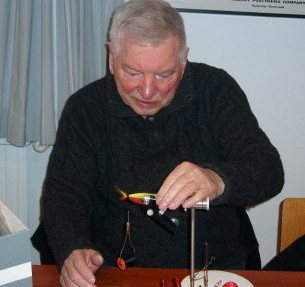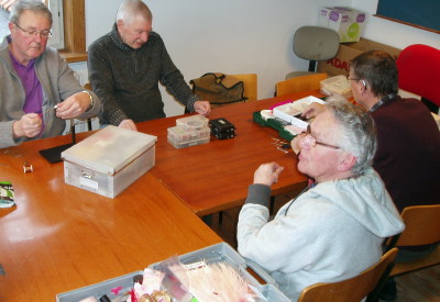 | Vi har således et fluebindingshold, som mødes hver tirsdag formiddag til et par timers hyggeligt samvær ved fluestikken. Alle er velkommen til at være med. |
