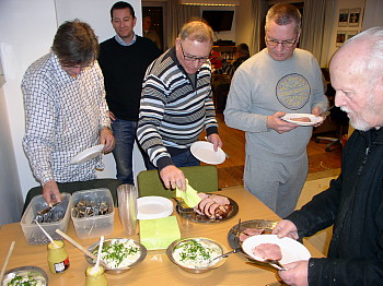 | Eller en varm ret på en klubaften, som giver os rig lejlighed til ved et møde at debatere fiskeri, bytte lystfiskerhistorier, prale med flotte fangster eller på anden vis berige vores klubkammerater med seneste viden, eller vi bare hygger os sammen. |
