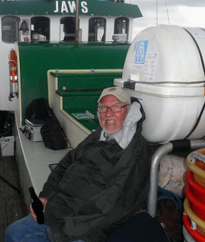 Hr. bladredaktør og bladskærer Ib Rasmussen til venstre havde god tid til at holde blyanten igang, så mon ikke, at vi får en nydelig omtale i klubbladet i september. Alligevel snuppede Ib 3 torsk.